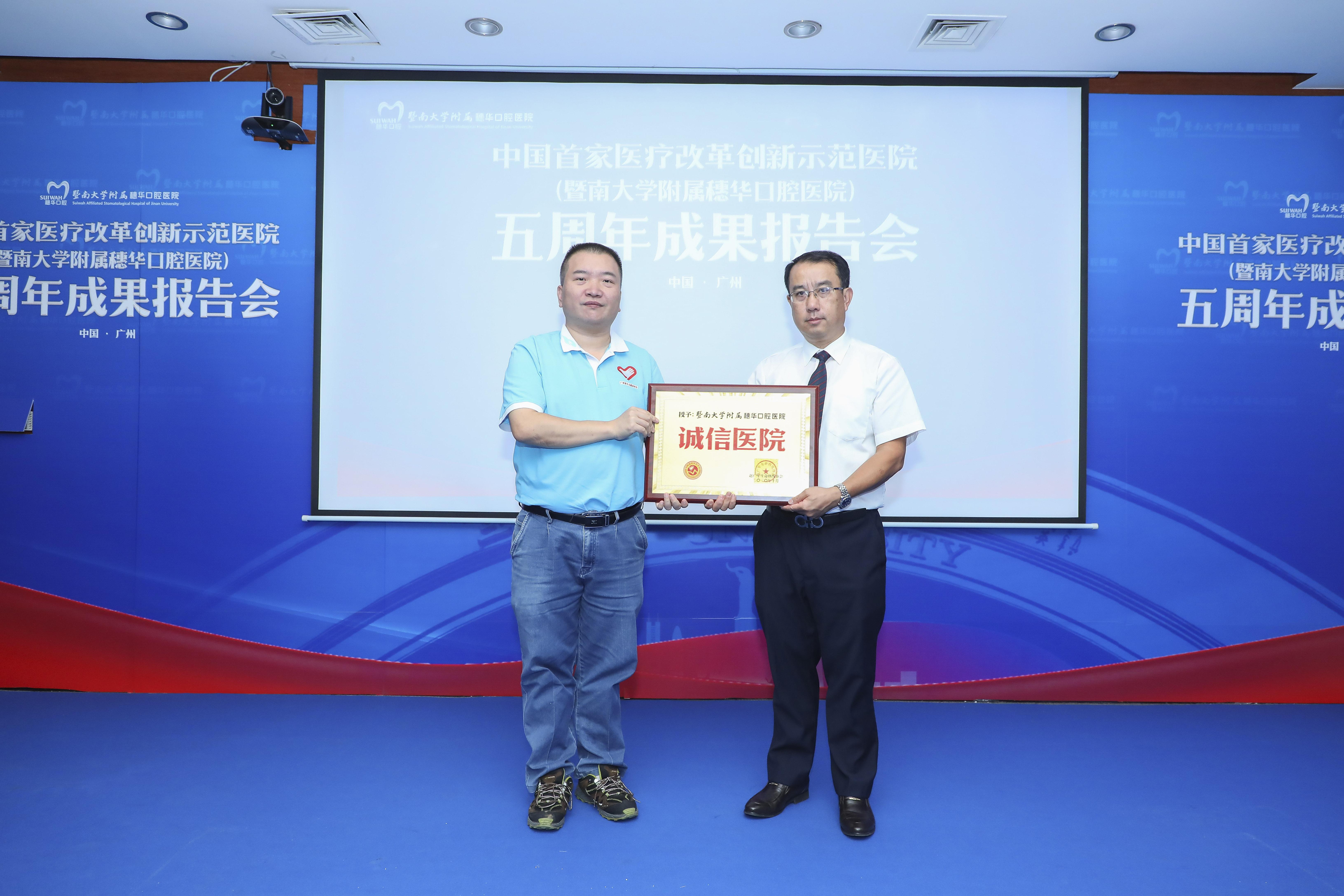 “诚信医院”首先要讲诚信,用心服务好每一名患者,还要有公益心,在心系患者的同时,要真心实意的做公益。活动现场赵广军生命热线协会代表为暨大穗华口腔授予“诚信医院”荣誉牌匾,就是对暨大穗华口腔的高度肯定。