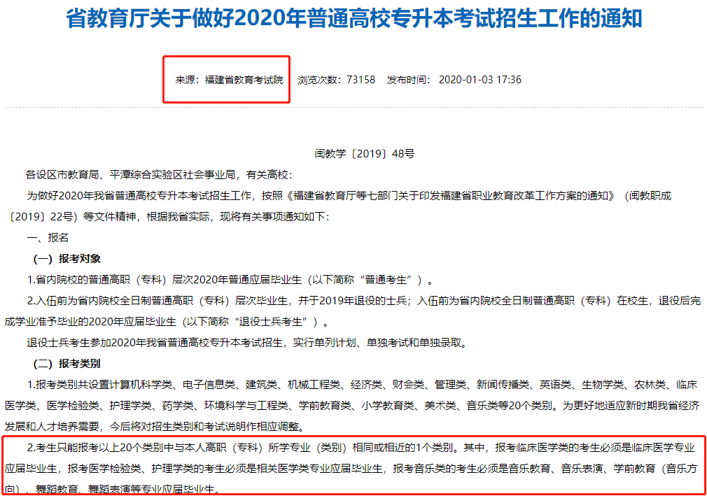如福建专升本要求:临床医学类考生必须是临床医学专业的应届毕业生......