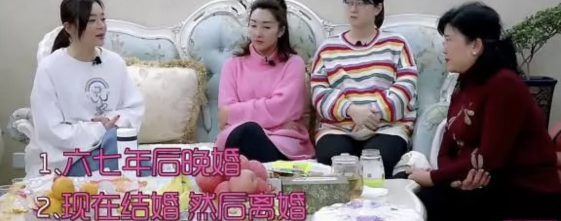 袁姗姗给母亲列出了两个选择:1、找个满意的六七年后结婚。2、现在结婚,然后离婚。