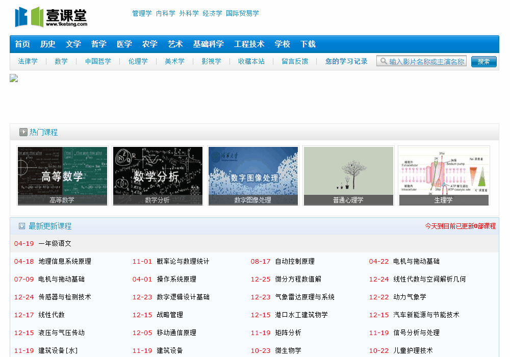 这是一款非常强大的在线视频教程网站,支持的视频课程种类非常丰富,包括:历史,文学,哲学,医学,农学,艺术,基础学科等。上面的所有视频课程都支持免费观看,而且还提供了视频教程下载功能。