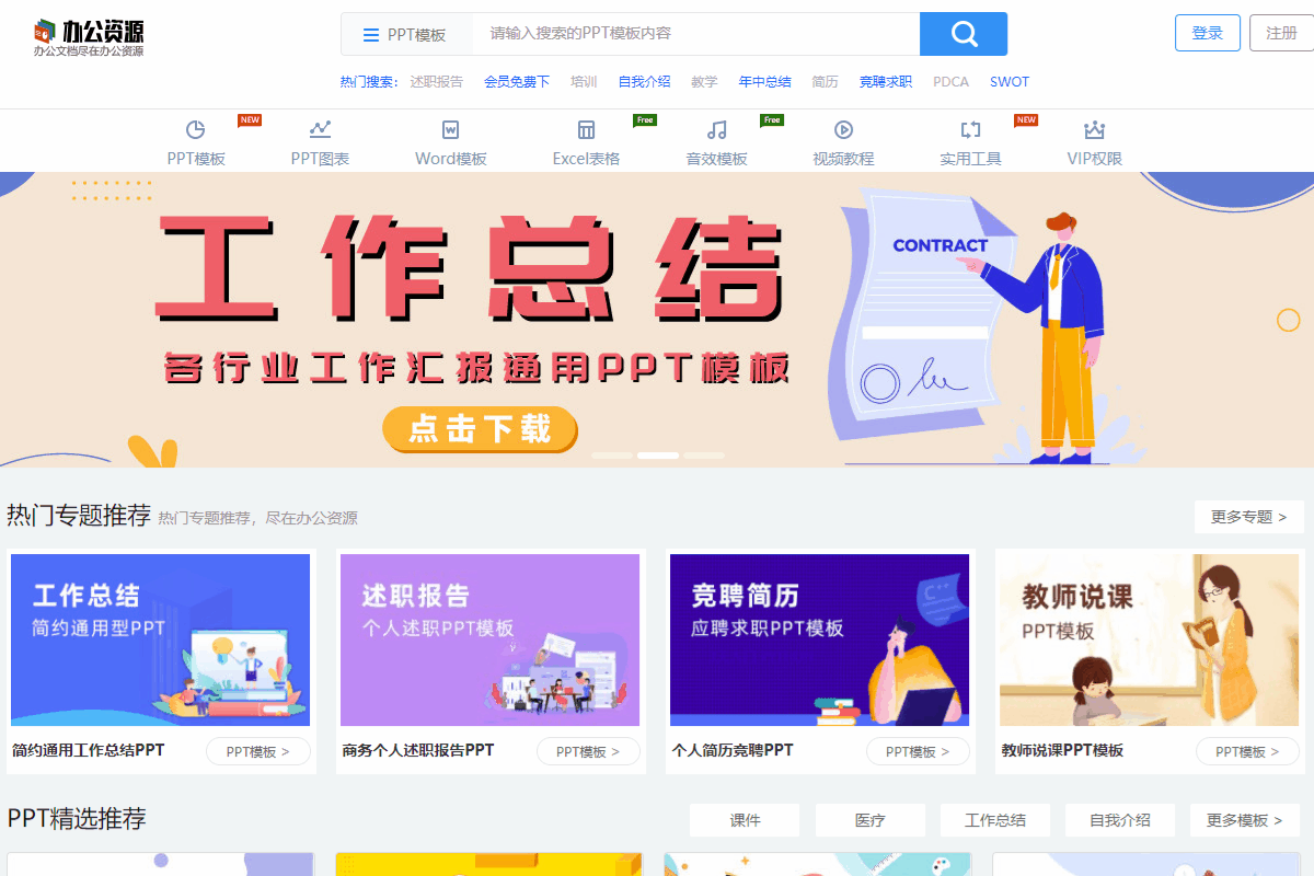 这是一个PPT模板资源网站,包含了几十种场景、行业、风格的设计,以及小学到高中的各科教学课件。谁知竟还隐藏着视频教程,有UI设计类、影视动画类、办公教程类等,都是全套的课件,让我们更系统的学习。
