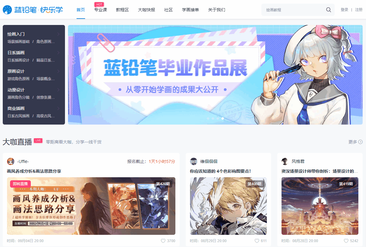 如果你想学习绘画,这个网站一定不要错过,零基础的绘画专业课,2~3个月就能速成,有日系插画、古风插画、游戏原画等等。如果你本身就有绘画基础,想要学习更多的画法,网站里也提供了教程专区。