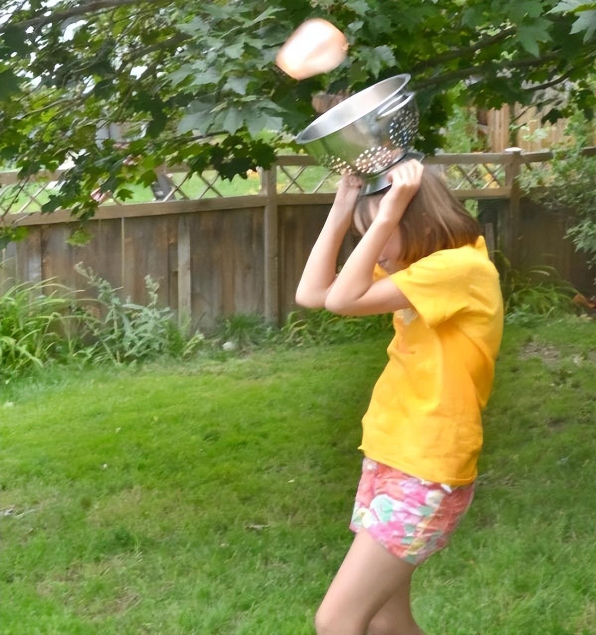 玩法:一大一小一组,小朋友头顶小盆,小朋友顶住家长投过来的水气球,接种水气球积一分,一分钟内分值多为胜。