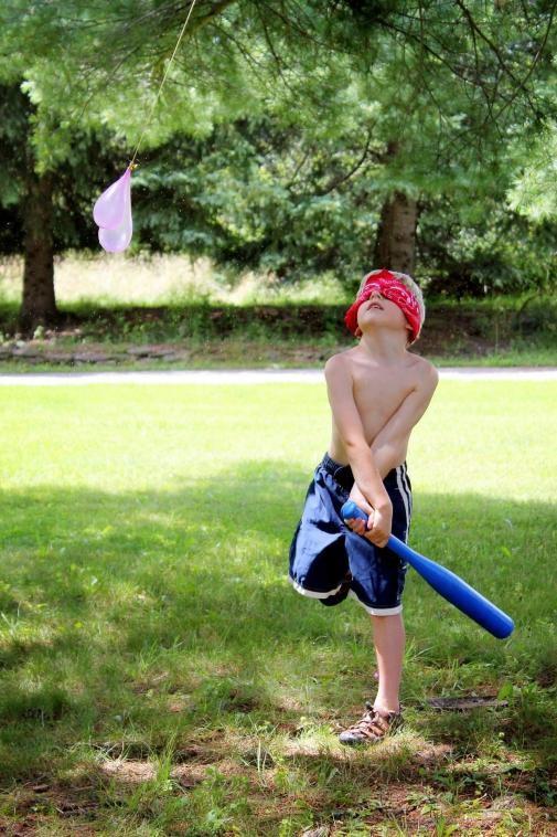 准备:海绵泡沫棒、水球若干、眼罩。