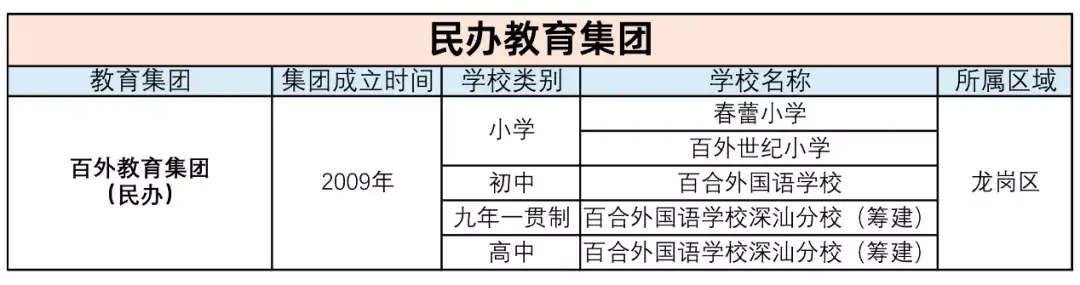3、快速发展阶段(2017-至今):福田、罗湖、宝安、龙岗、龙华等片区纷纷成立了教育集团,呈现出百花齐放的状态。