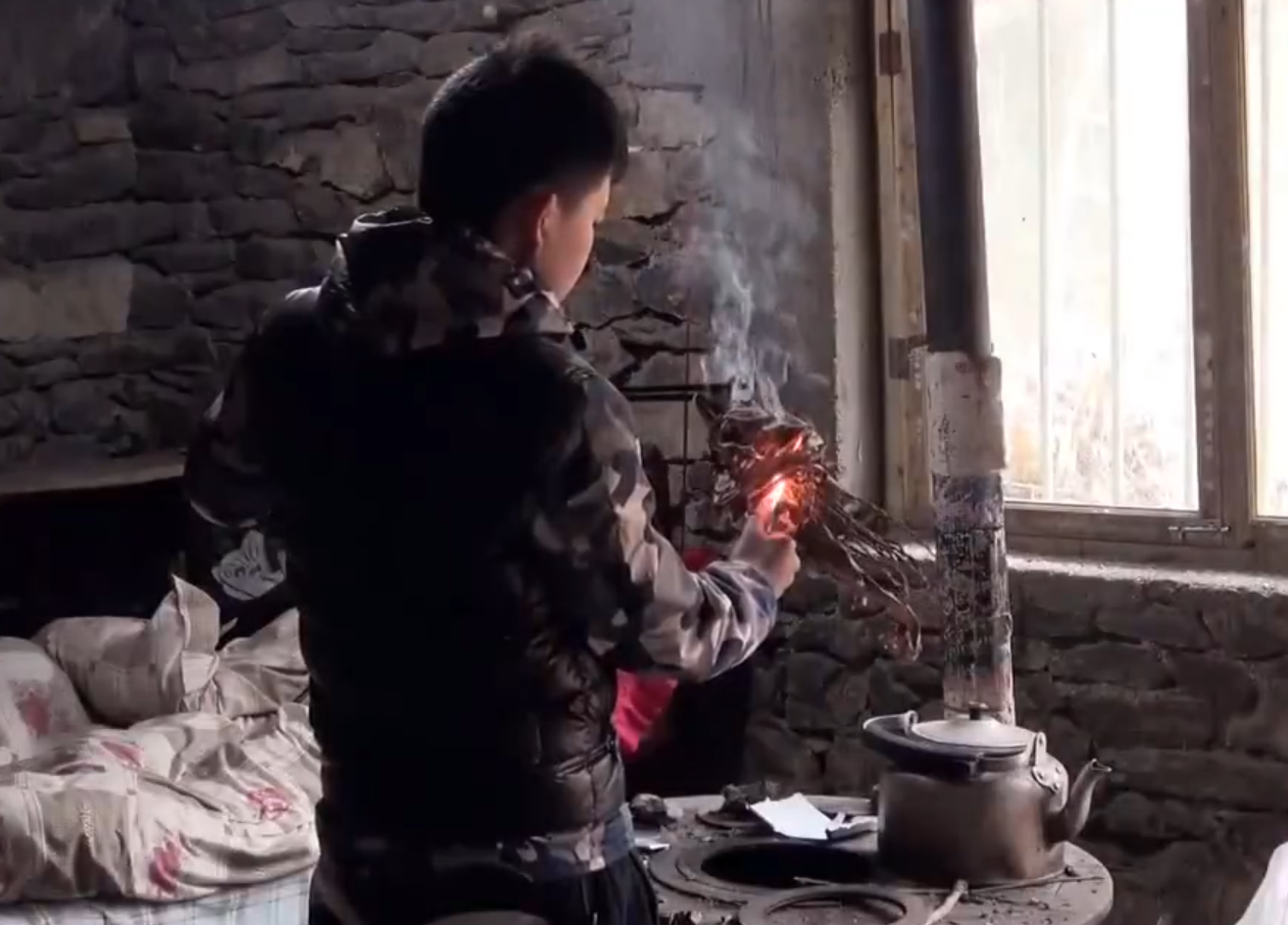 休息了一会儿之后,何俊鹏主动承担了烧火的重任。