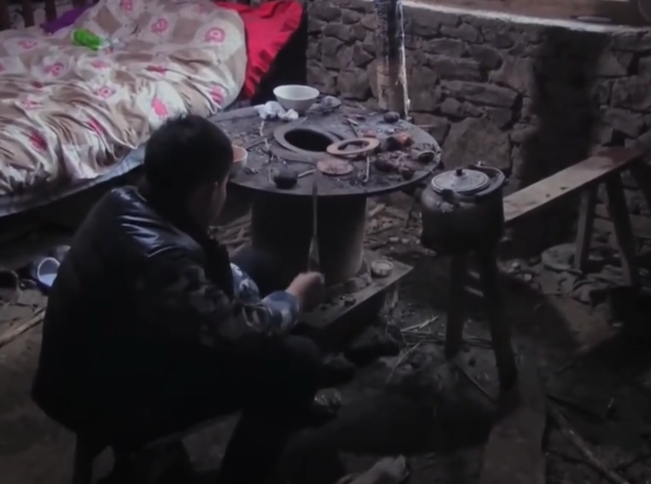 后来,他实在饿得受不了了,又在小伙伴的鼓励下,跟他一起在屋外重新搭了一个灶台。