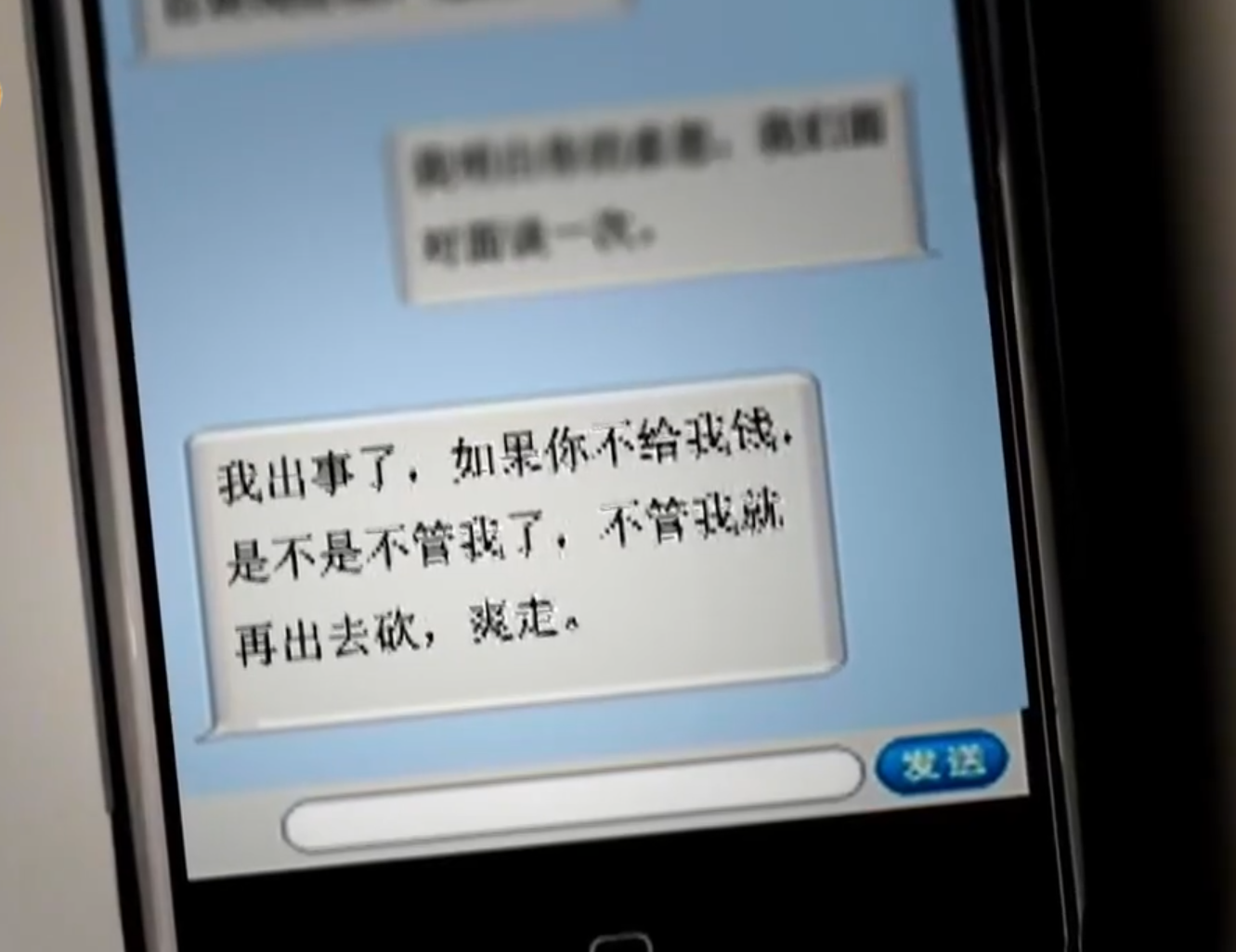 何俊鹏在短信中威胁父母,再不给他钱,他就要去街上砍人了。