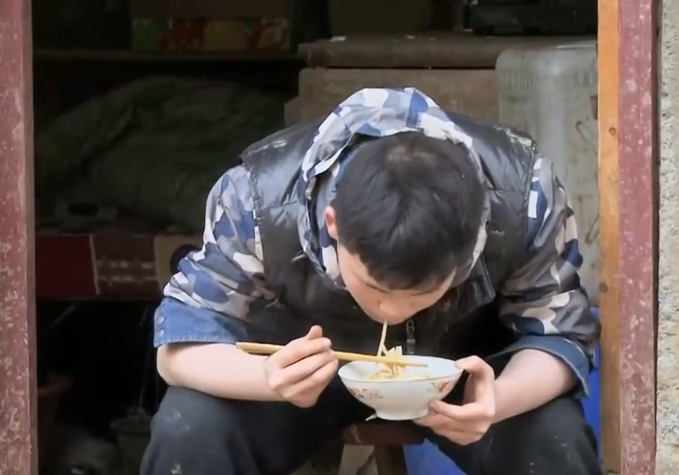 这碗面条的味道并不算好,但是何俊鹏却吃得很香,因为这是他通过劳动换来的。