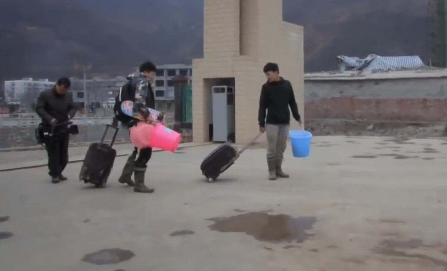 在农村待了几天之后,两人在节目组的要求下,拖着行李来到了镇上的初中上学。