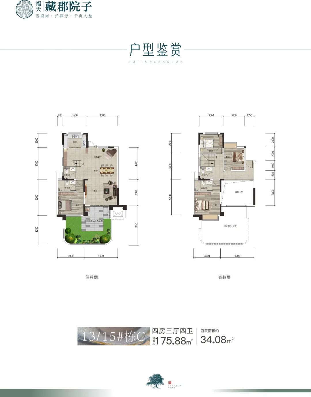 在即将充满“爱”的520,福天藏郡院子13#栋加推复式建面约175-185㎡复式户型,一层八户,可以自由改变空间;双钥匙入户,私密空间更好保护。