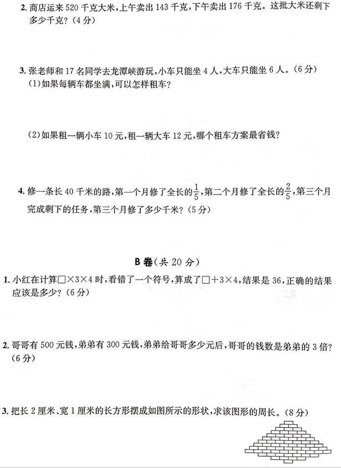 4、40×(1-1/5-2/5)=40×2/5=16(千米)