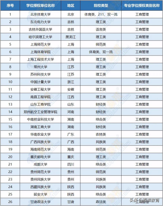 去年国务院学位委员会近日公布了新增博士点和硕士点名单,其中共有26所院校新增MBA招生。