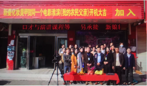 网易娱乐11月27日报道 昨日 上午 淮滨版《我的农民父亲》在淮滨新曼化妆美甲学校举行了热烈的开机仪式。