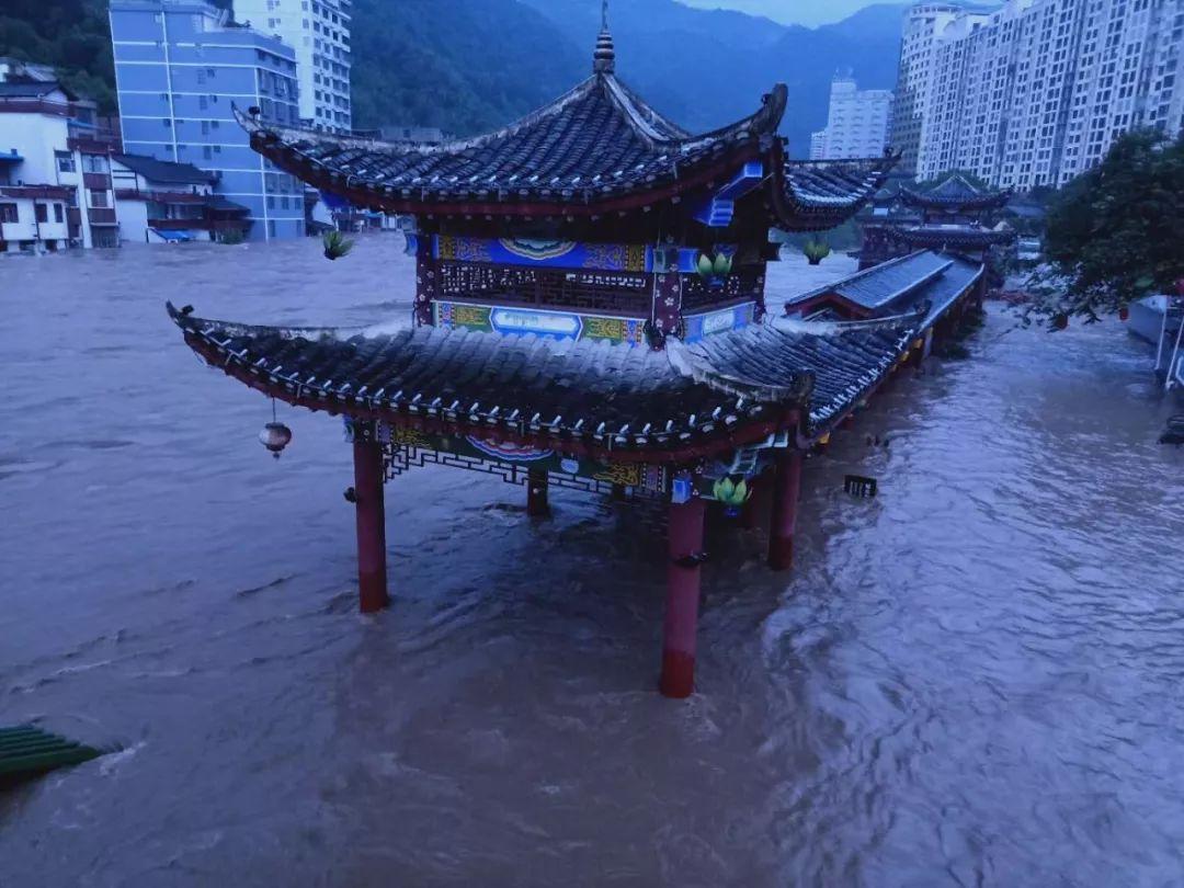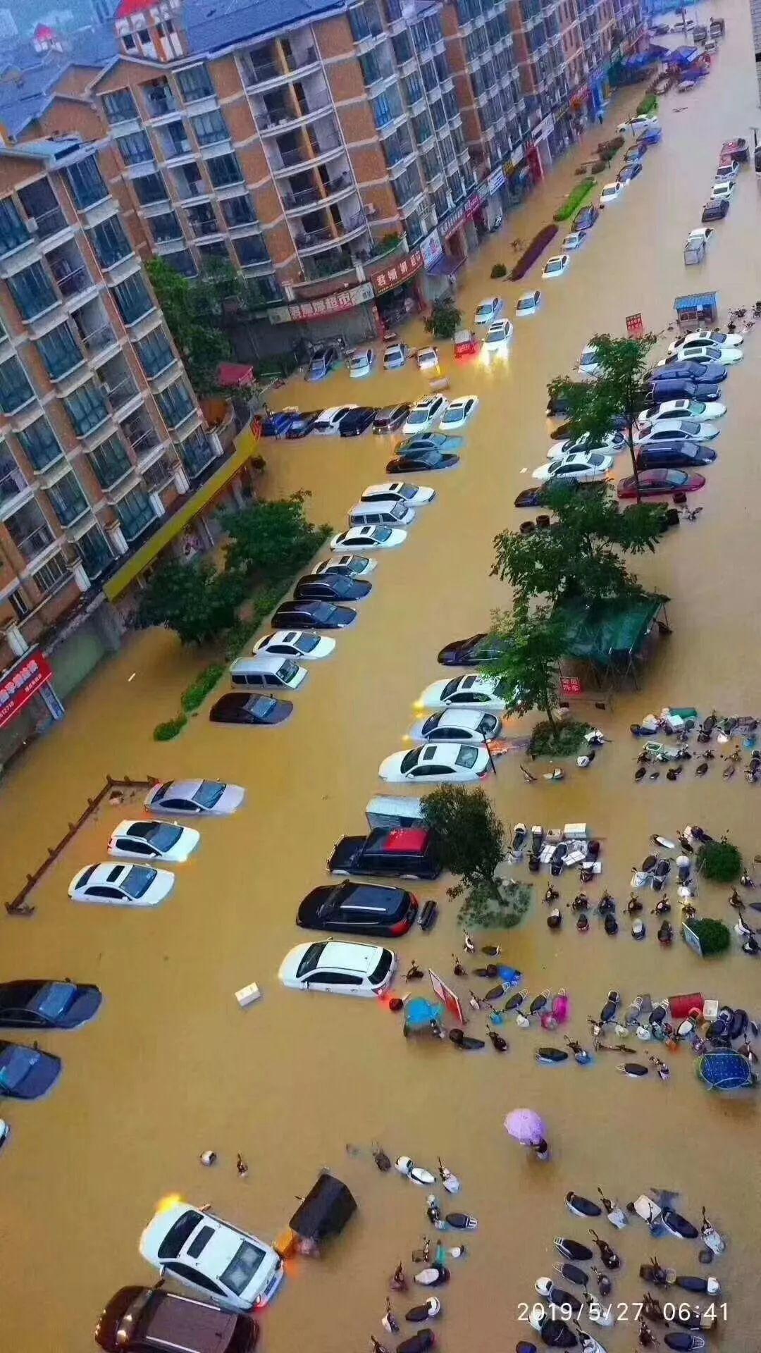 资源县城遭暴雨袭击。