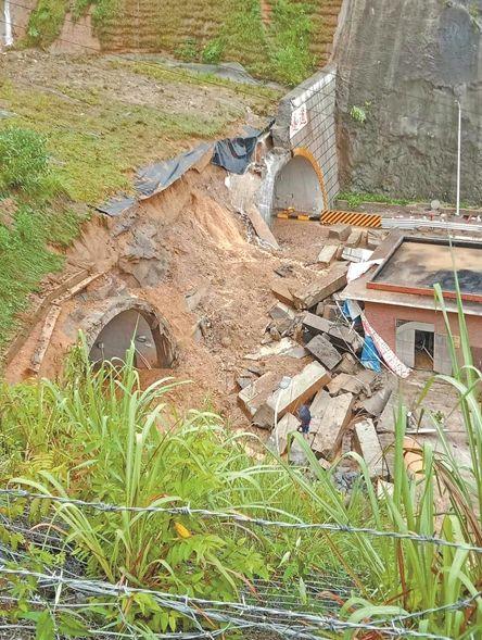 河百高速金洞隧道口塌方现场。