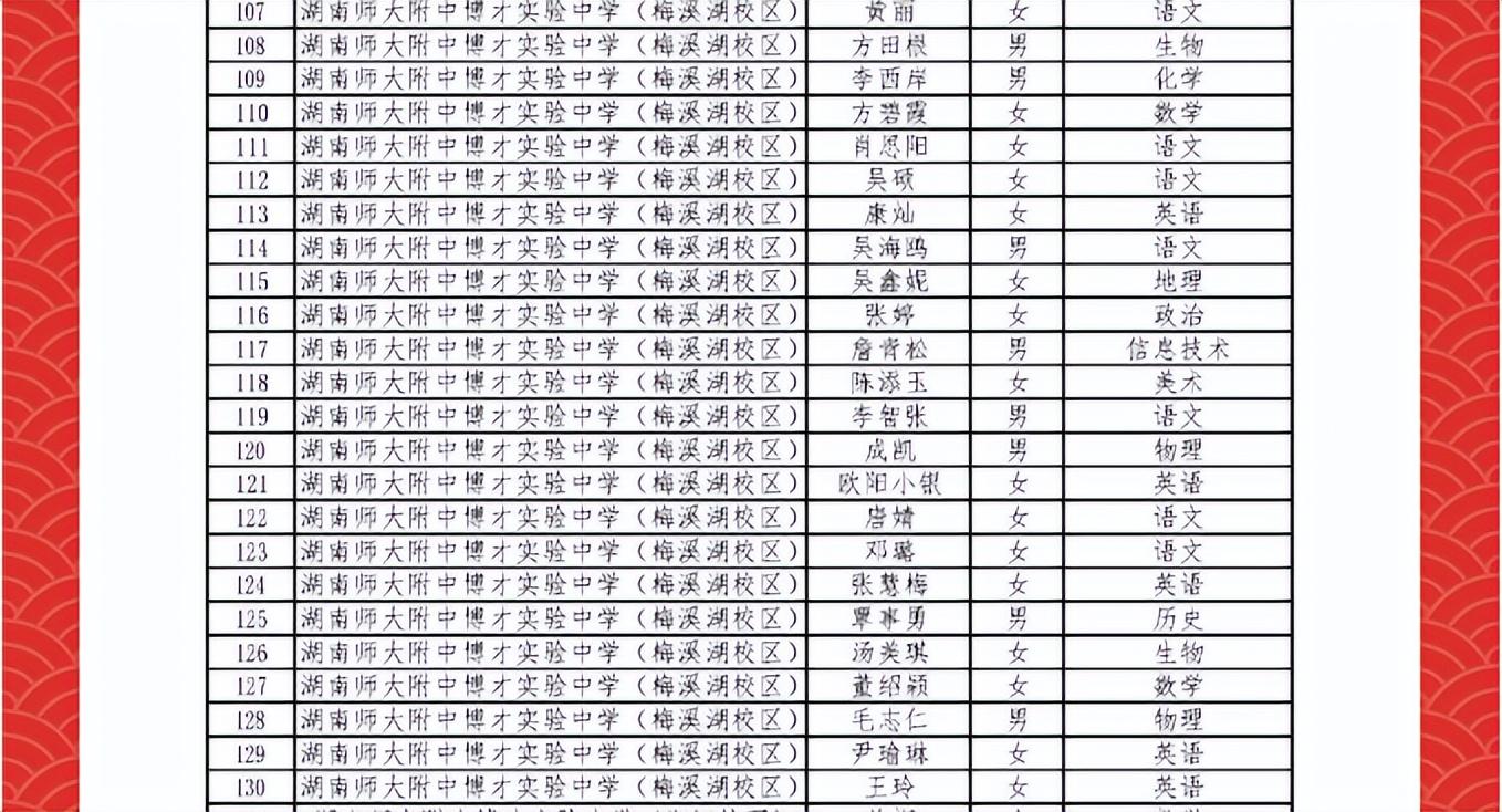 2022年,岳麓区中小学骨干教师评选中,师大附中博才梅溪湖校区共24名老师上榜。