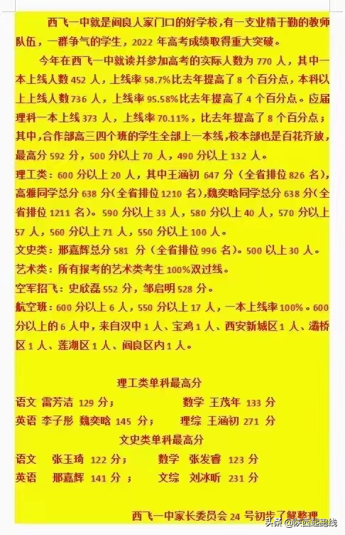 ●2022年高考,陕西省各高中成绩概况汇总(附各学校喜报,持续更新中……)