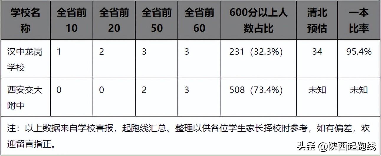 从两个学校公示的数据来看,汉中龙岗高分段学生人数略领先于西安交大附中。其中汉中龙岗理科最高分701分,文科最高分640分;交大附中理科最高分691,文科最高分660。