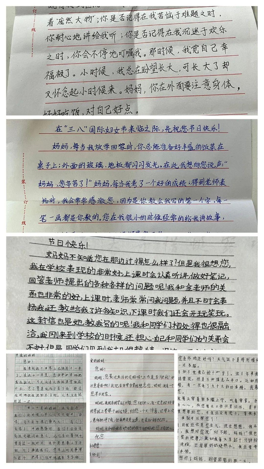温暖的文字,总是能触动人的心。在孩子们写给妈妈的信中,字里行间透露着对母亲的关心、思念与感谢。目前,学校已经将收集到的信件全部邮寄给每位在外工作的母亲,相信孩子们这份真挚的爱会让母亲感到温暖和幸福!