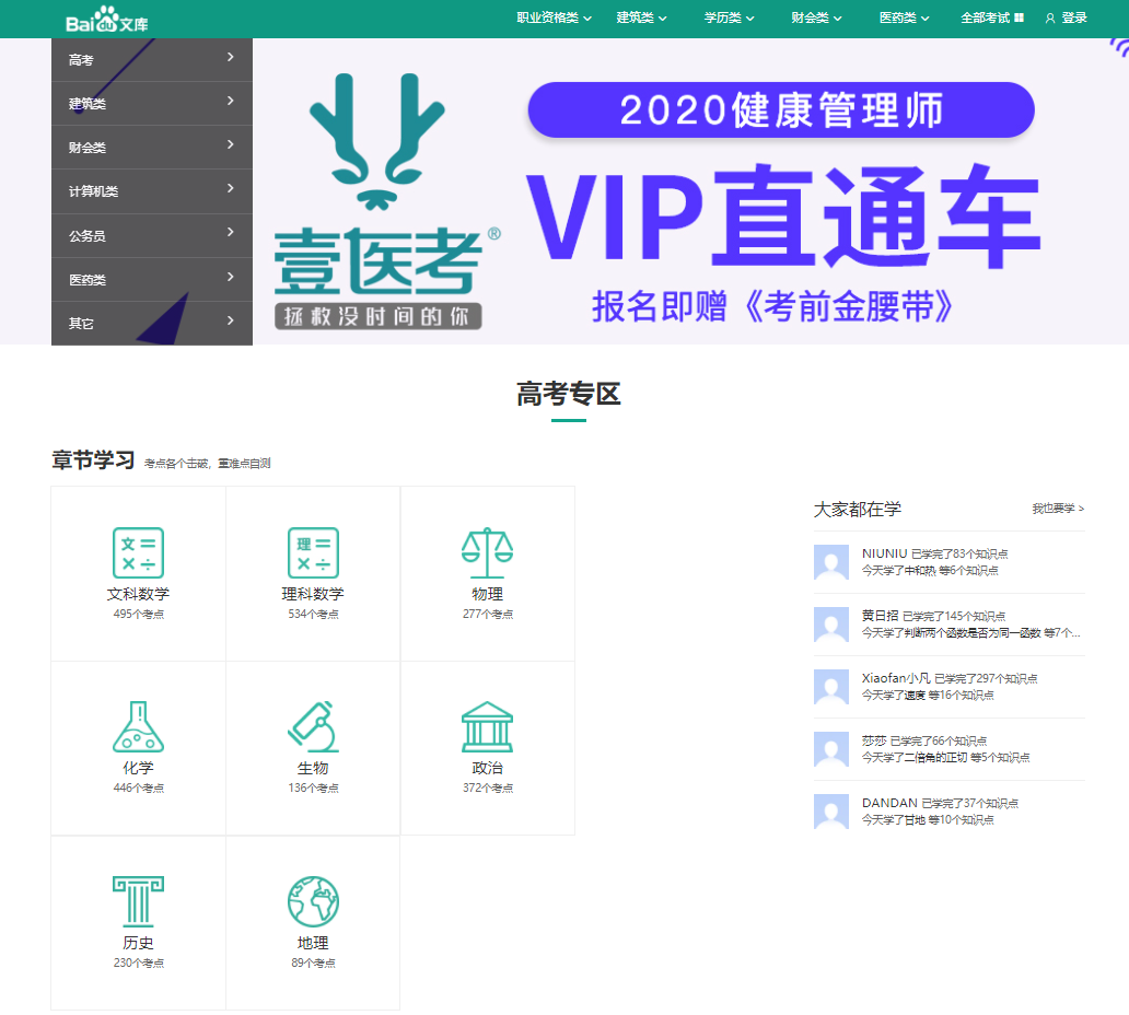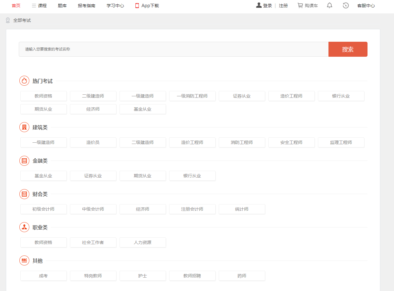旨在为考生提供高效的智能备考服务,覆盖领域有高考、财会类、建筑工程、职业资格、医卫类、计算机类和学历类等。拥有优质丰富的学习资料和备考全阶段的考试题库。
