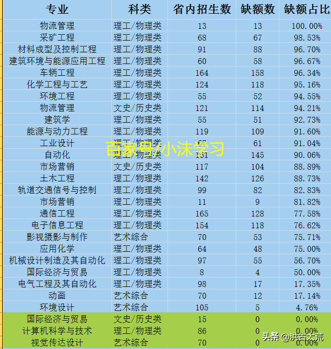 还有三个专业缺额低于20%之外,剩余的缺额都在50%以上。