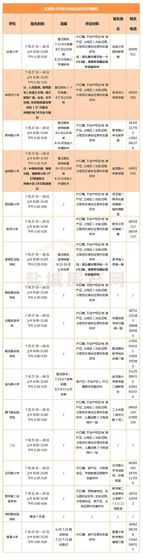 随着时间走到7月下旬,盐城各小学新生源登记报名工作陆续开展。很多家长担心耽误孩子入学,十分关心小学报名时间,报名资料、报名条件、报名流程、施教区以及新房、二手房有哪些,小编急各位家长之所急,汇总了盐城各小学报名方面的相关要求,家长们快看过来。