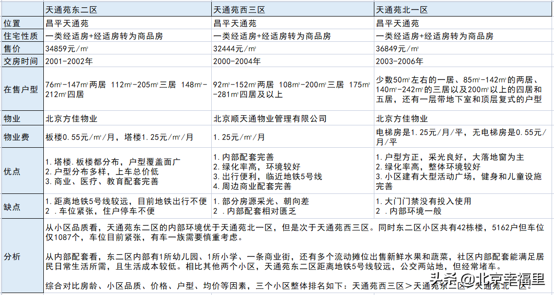 天通苑共分为东西南北中5个区,2001年-2008年陆续建成,以经济适用房为主,整体均价在3万-4万/平方米。户型种类丰富,主力成交户型是80平方米-100平方米的两居室和150平方米-160平方米的三居室。均价低,首付低,户型大,更能契合购房者的承受力,但这么多区又有什么区别呢,大福挑选了不同区进行对比。