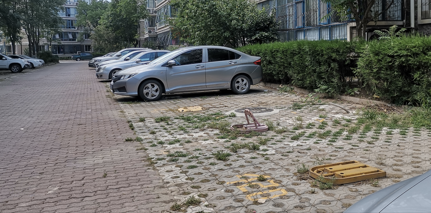 小区内部地下车位开放数量较少,且电梯不能直接地下车库,业主不愿意把车停到地下;小区内乱停车情况严重,机动车、非机动车随意停放,机动车不止能停在单元门口,还能停放在绿化带上;绿地上、步行道路、空地上随处可见狗粑粑;小区内主路两侧停车情况严重,业主出行错车困难;活动区多是老人孩子多,私家车越来越多,小区内部道路狭窄,安全隐患严重;小区内绿化多,但不成景观;板楼社区一层带小院,每个小院面积都在不断扩大,有的小院已经把“公共绿地变菜地”;(图:小区内部实景图)