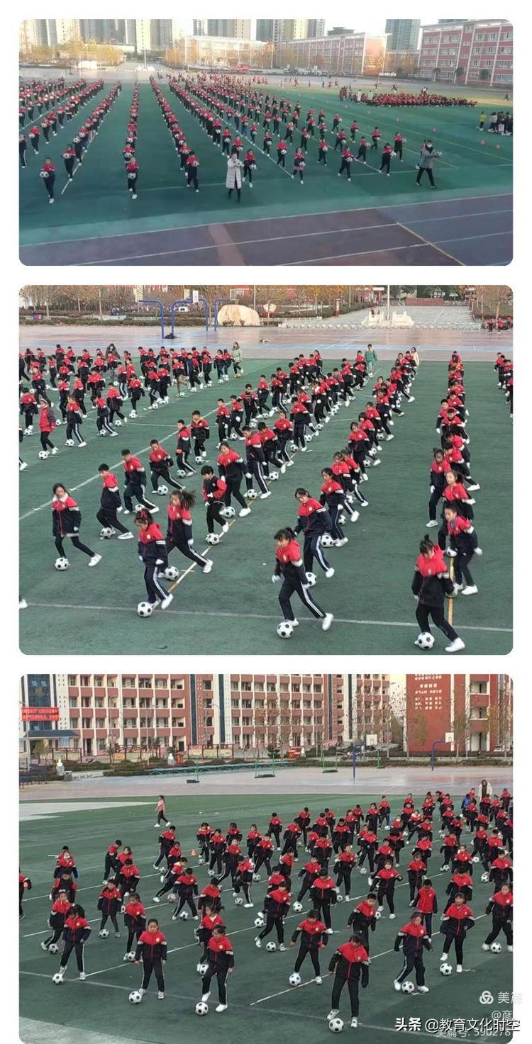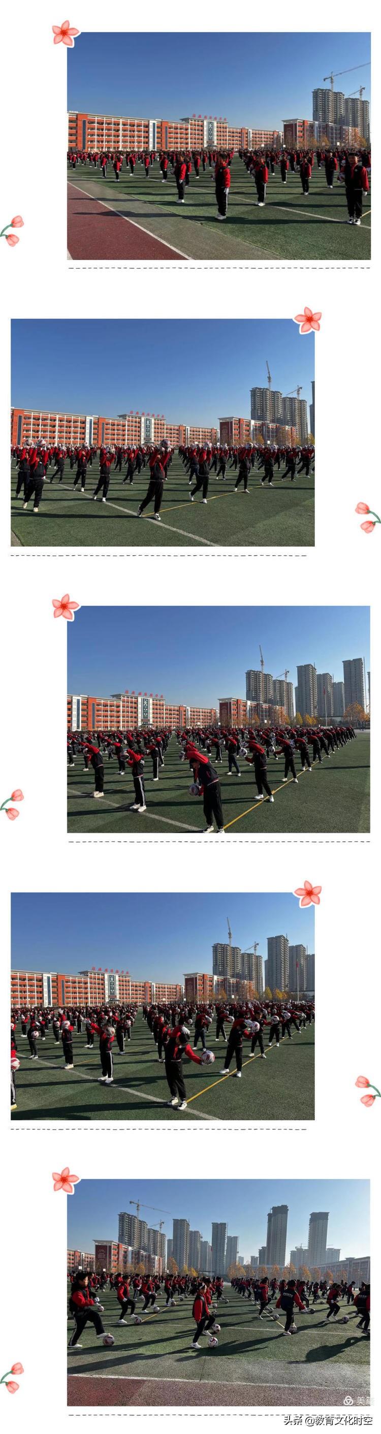 比赛环节,同学们做着整齐划一的动作,伴随着音乐节奏,开始一场场精彩的表演。同学们激情飞扬地跳着足球操。每个人都在暗暗较量!