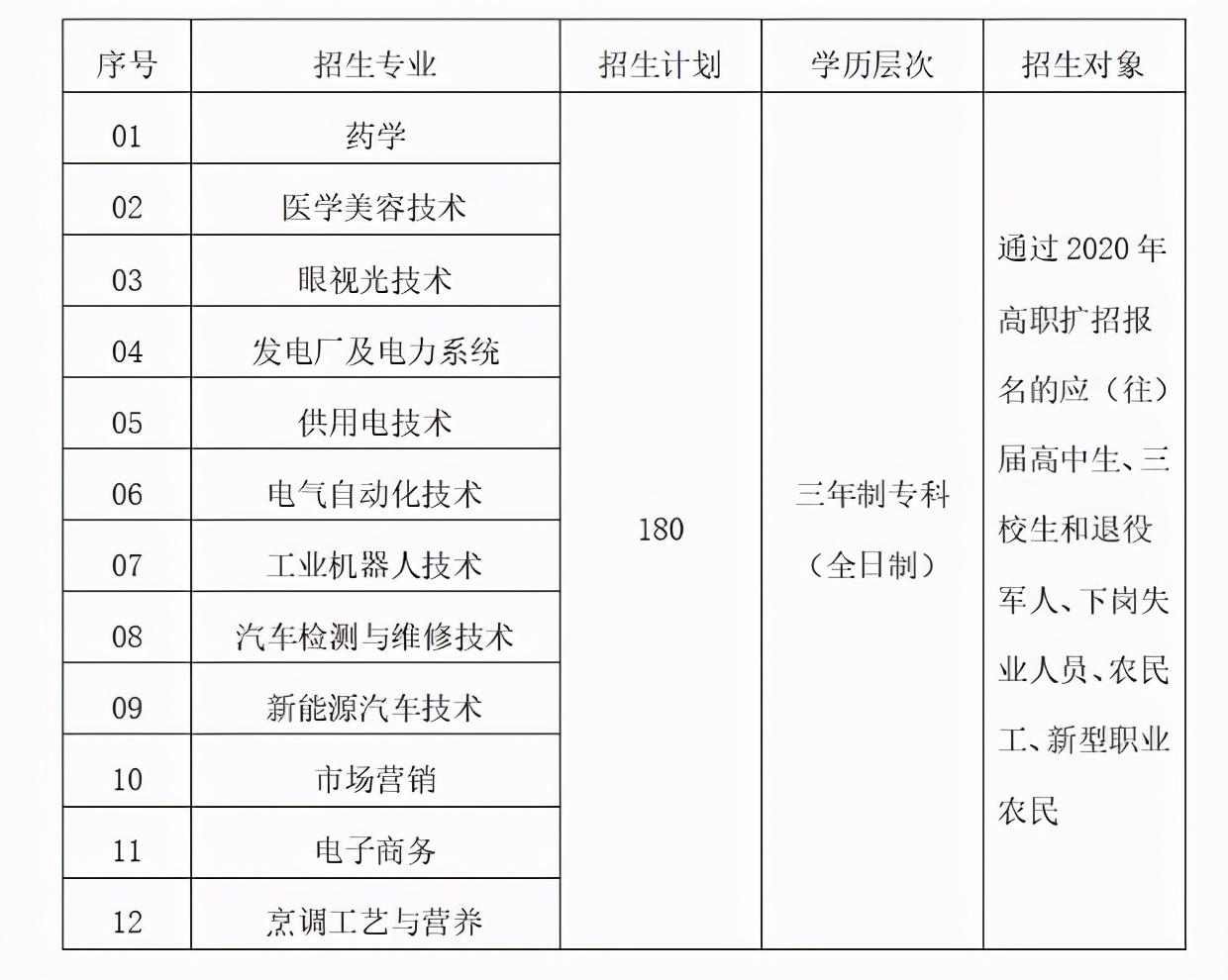 以上高职扩招各学校及专业是已2020年基础可参考,实际情况已省教育厅下发2021年扩招文件为准