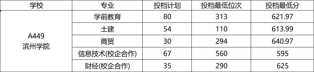 各院校录取分数线