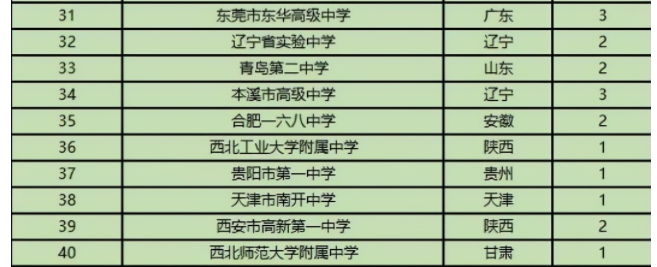 位于榜单20名左右的有东北育才中学,该校位于辽宁,该校建校历史可以追溯到1927年,曾用名奉天千代田小学、富士青年学校,后于1949年正式成立并开始招生,是当之无愧的辽宁省第一名。