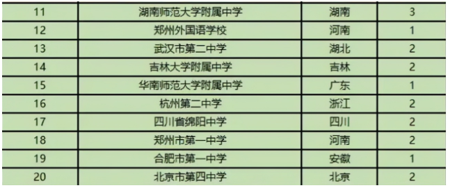 再往后我们能看到位于河南的郑州外国语学校位列第12位。该校的特别之处是全国仅有的16所具有保送资格的外国语学校之一,建校历史可以追溯到1983年,外语教学能力不容小觑。