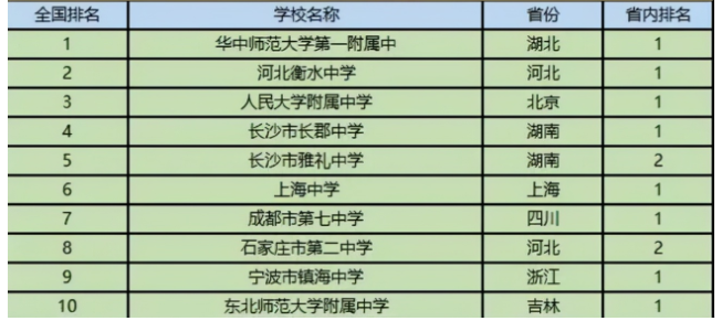 2021年全国中学排行榜出炉,衡水中学无缘榜首,人大附中仅排第三