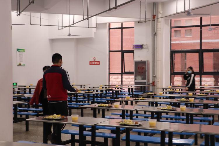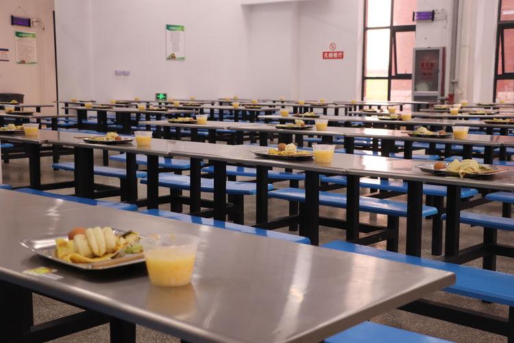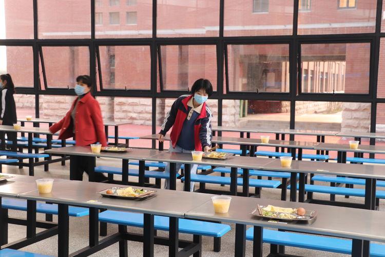学校食堂是学校人员密集场所,更是食品卫生安全的重要部位,做好学校食堂防控是重中之重。为了确保学生在食堂真正按照各项要求进行就餐,开学第一天,校领导和班主任老师进入校园食堂进行“督战”,有序指导学生开展就餐。对于家长较为担心的聚集用餐的情况,我校食堂提前为学生打好饭菜,采用的分餐方式是一人一桌,在最大程度上缓解聚集情况的发生。学校食堂采用的餐具、餐桌、餐椅全部通过消毒设备进行消毒,消除家长们的后顾之忧。全方位保障孩子们“舌尖上的安全”。