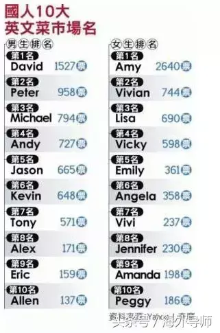 甚至有人在网上发了起一个投票,最土英文名排行: