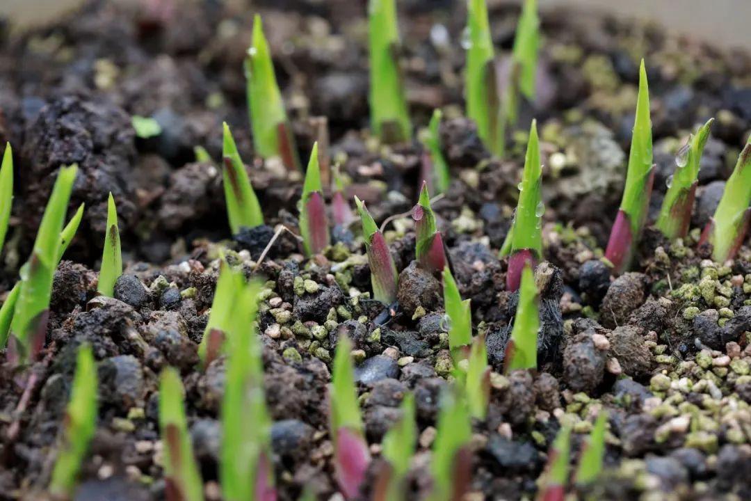 干湿循环好,土壤里的氧气含量足,根系呼吸好,植物生长就快,这个时候薄肥勤施,水肥要跟上。干湿循环不好时,植物生长就慢,甚至僵苗,水肥就要控制,盆土要松动,想办法增大通风。