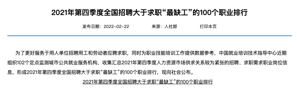 在人社部发布的2021年第四季度全国招聘大于求职「最缺工」的100个职业排行中,焊工一直位列前排。并且连续登榜。