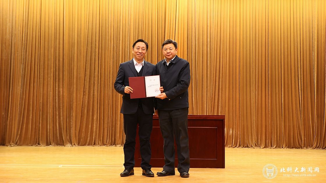 2021年12月15日,于勇同志兼职教授聘任仪式暨首场主题报告《可持续发展的中国钢铁》在北科举行。会上,学校校长杨仁树为于勇颁发聘书。