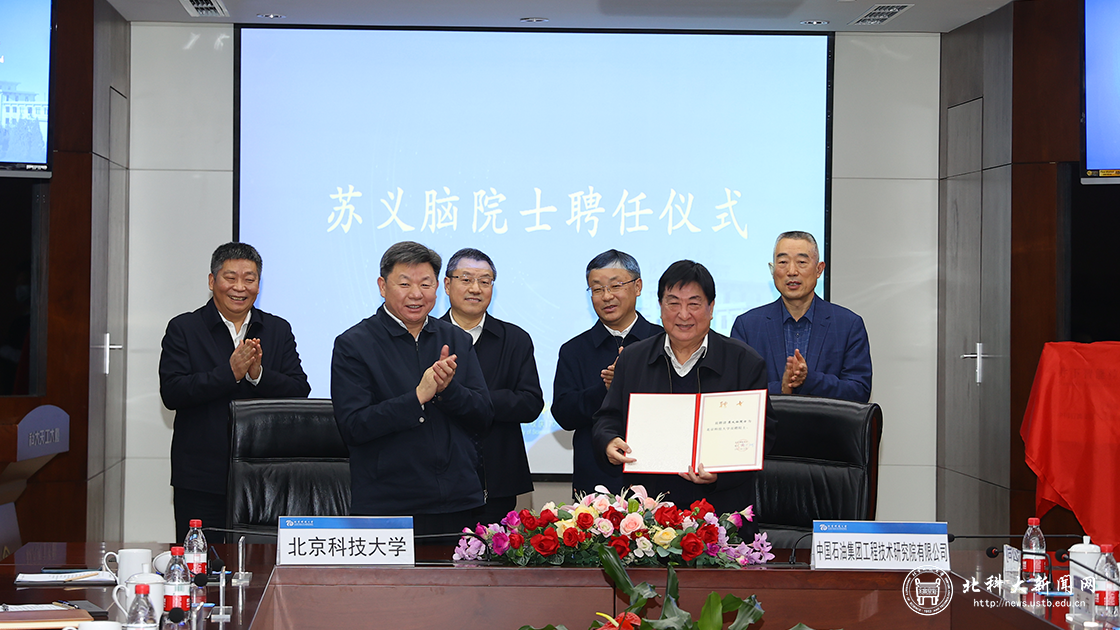 2021年12月29日,北京科技大学举行苏义脑院士聘任仪式。会上,学校校长杨仁树为苏义脑院士颁发聘书。