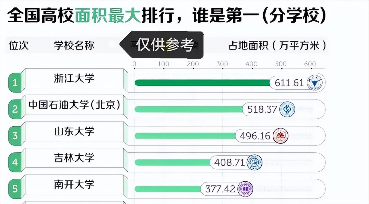 下面就带各位学生来了解一下,不同高校的面积排名情况,那么哪所高校的面积要更大一些呢?从相关统计来看,顶尖名校浙大的面积是最大的,位列榜首的位置。