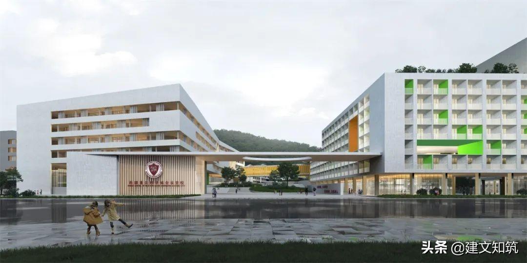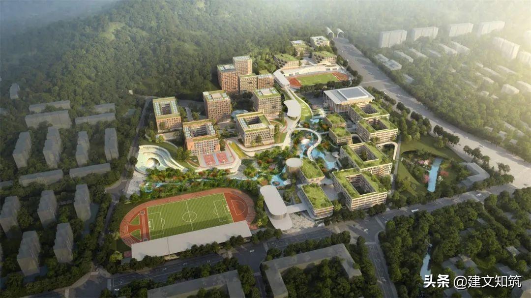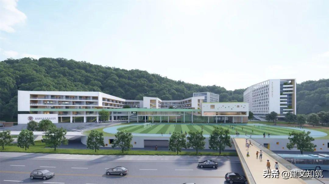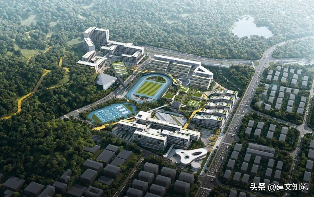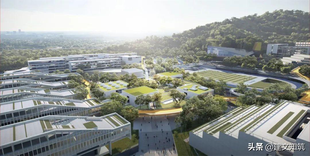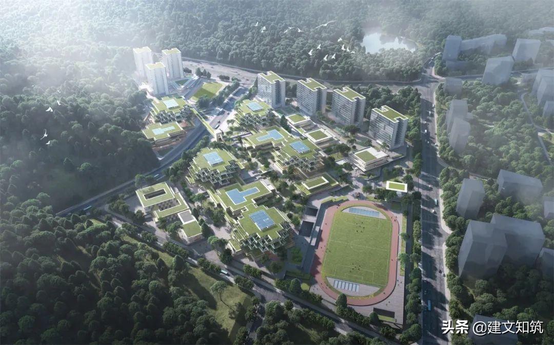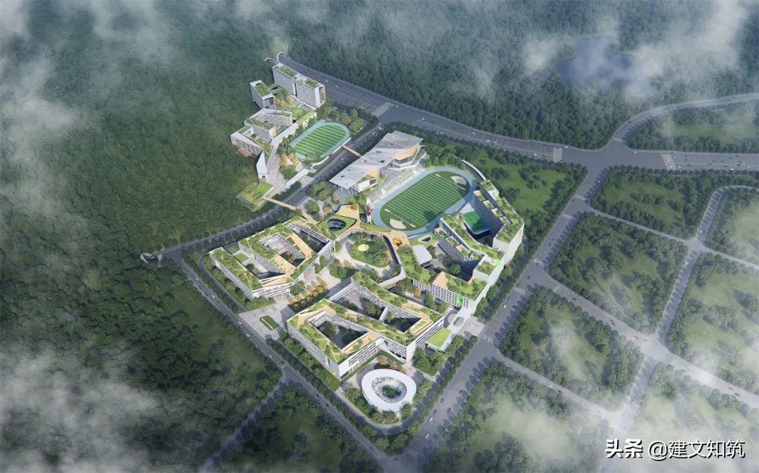 专家评语:方案采用围合式布局,为校园创造了一个开敞的内向空间,打开了朝向西南山体的景观视野。小学部、初中部、高中部主体建筑设计的合理性及可行性存疑。