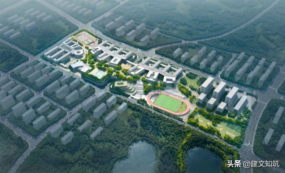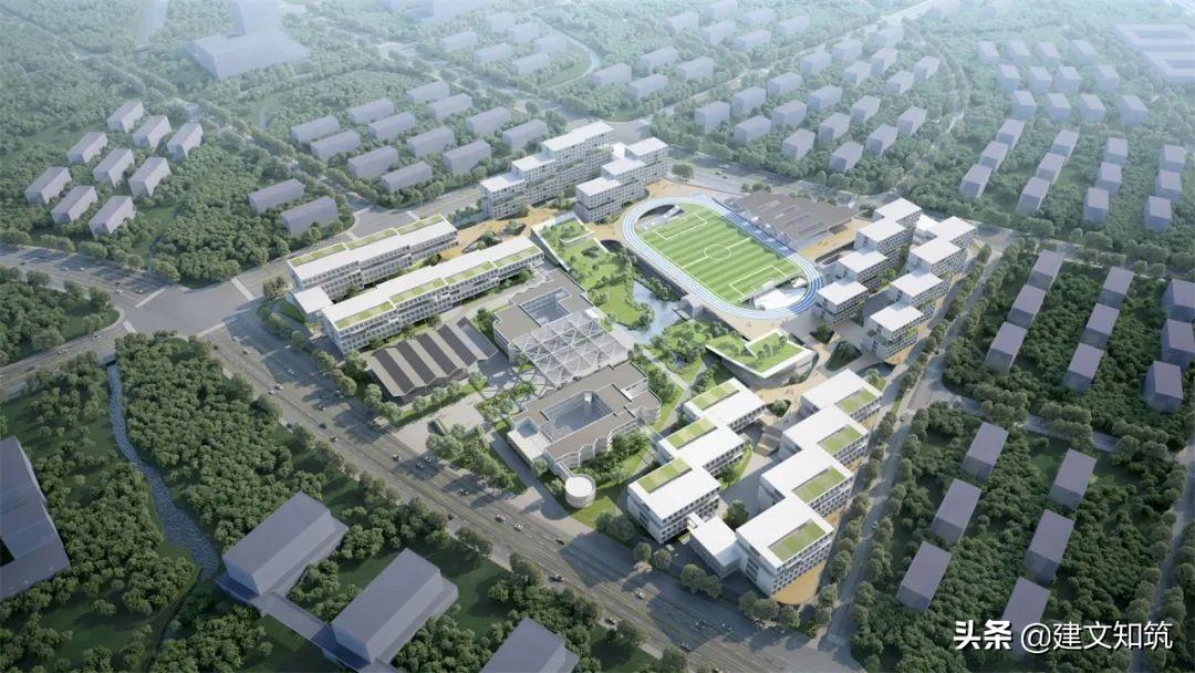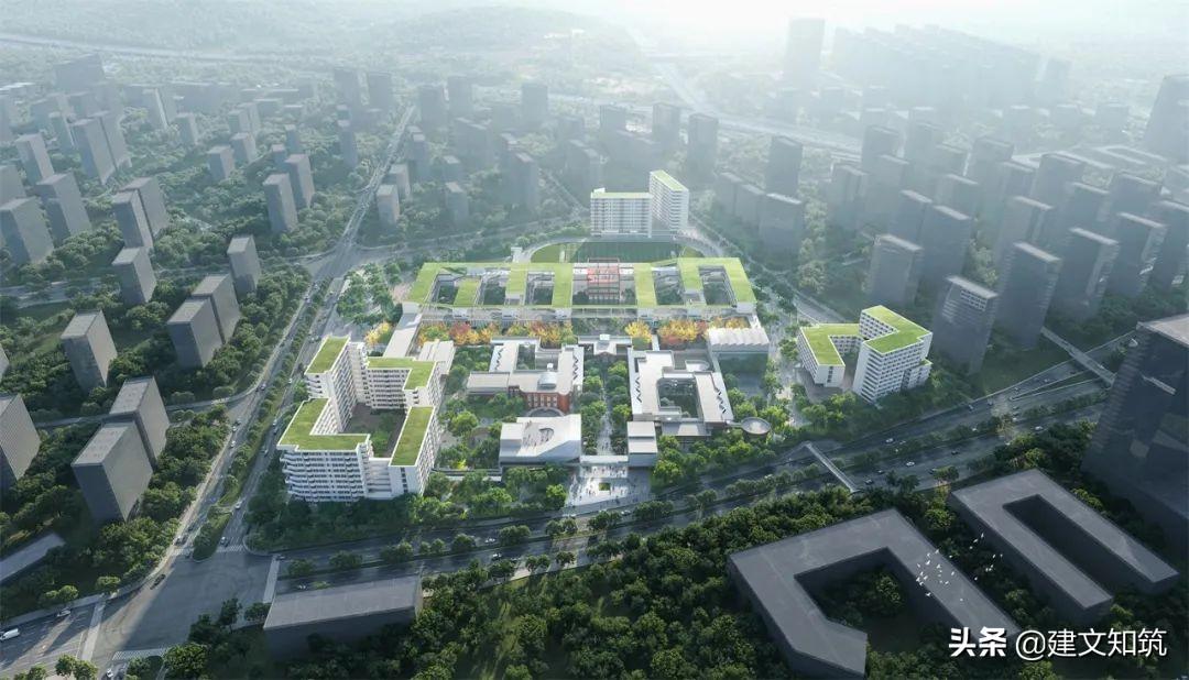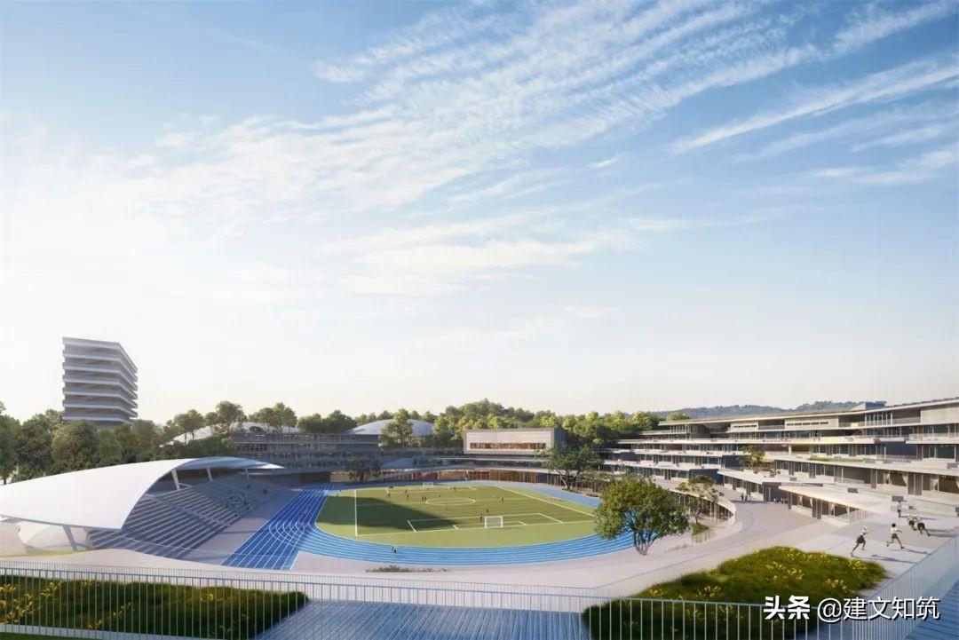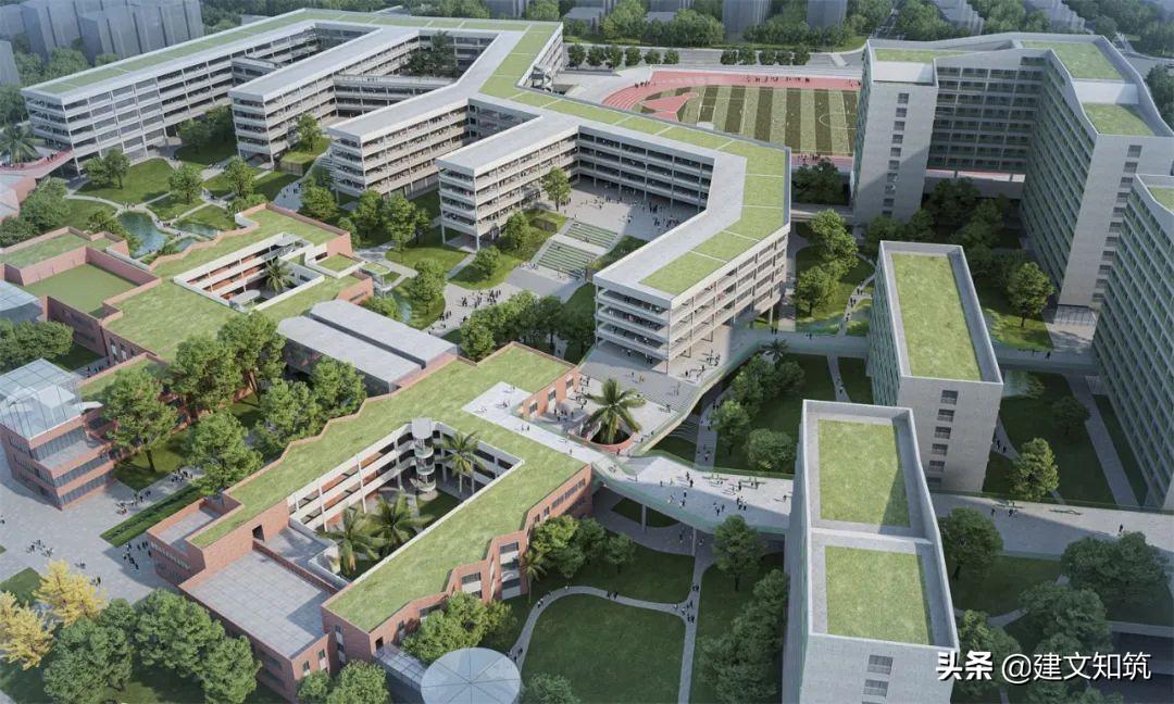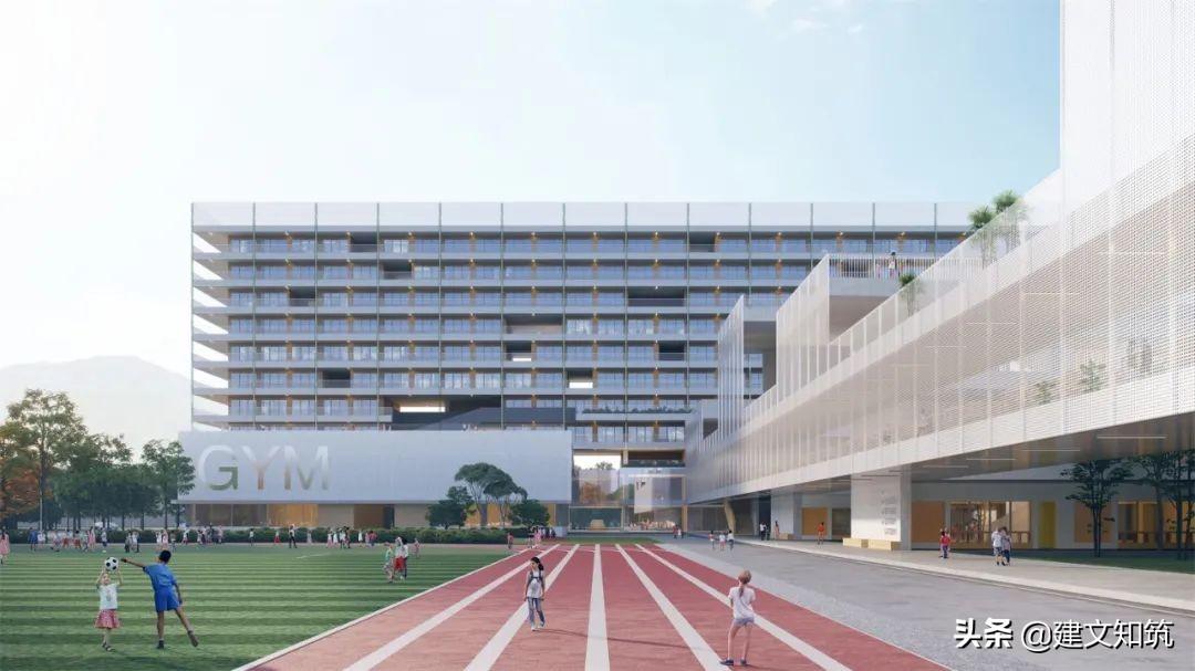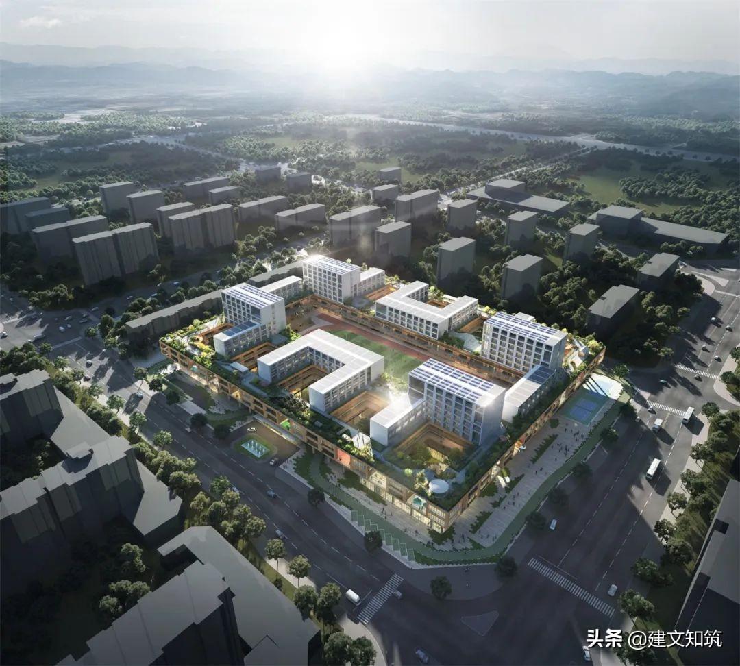 专家评语:方案采用围合式布局,为校园创造了一个开敞的内向空间,打开了朝向西南山体的景观视野。小学部、初中部、高中部主体建筑设计的合理性及可行性存疑。
