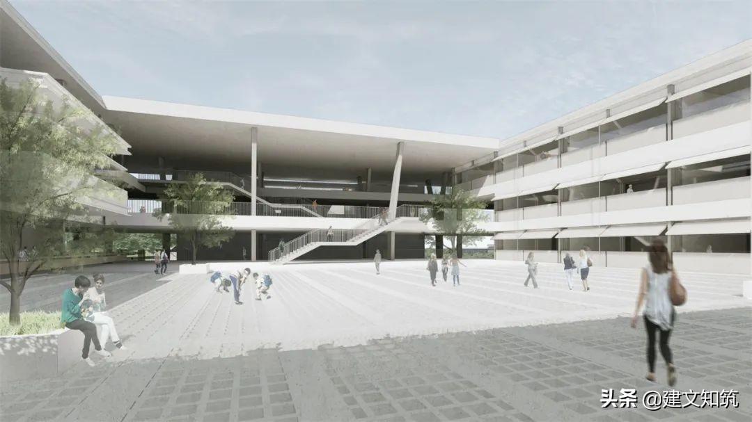 专家评语:方案在类型上有突破,展现了对核心议题的深度思考和扎实的设计能力。在城市关系上,与永乐湖自然景观建立了积极的空间关系。利用运动场下部空间,为社区公共环境的营造创造了有利条件。在有限用地条件下,创造了模块化单元组织,形成了独特的校园空间形态。以场所营造和建构理性为出发点,实现了功能和体验的丰富性。