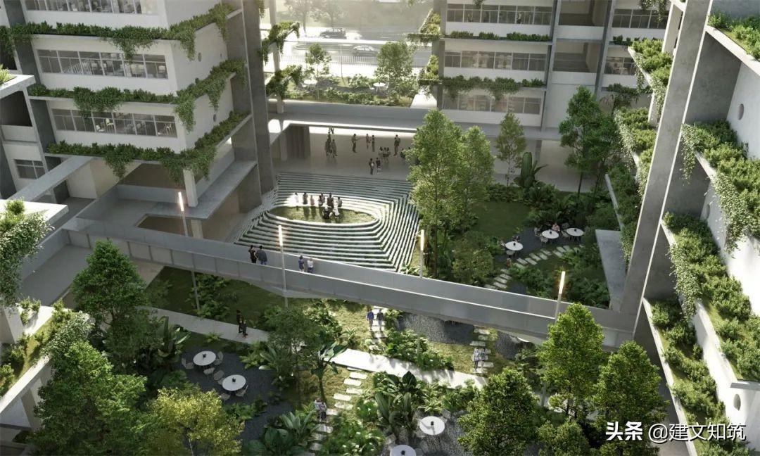 建议对生活区宿舍楼与整体环境的关系再做研究和优化;运动场下部空间及用地四周界面进一步探讨与社区共享的可能性,优化城市空间界面;探讨外立面立体种植的可行性。