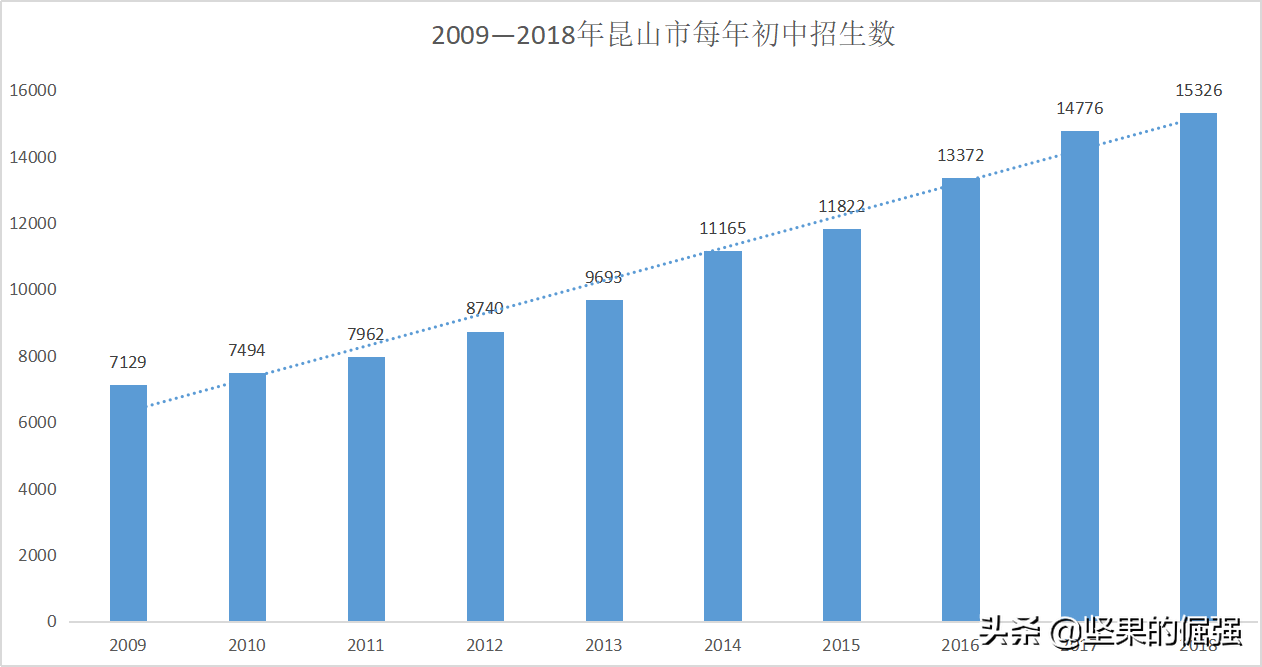 3、初中招生人数:2009年,初中招生人数为7129。2018年,初中招生人数为15326,新增招生人数为2009年的115%。