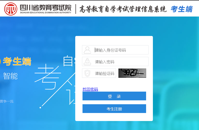 考生可登录《四川省教育考试院》高等教育自学考试管理信息系统,首先进入四川省教育考试院,点击右侧“招生考试服务平台”