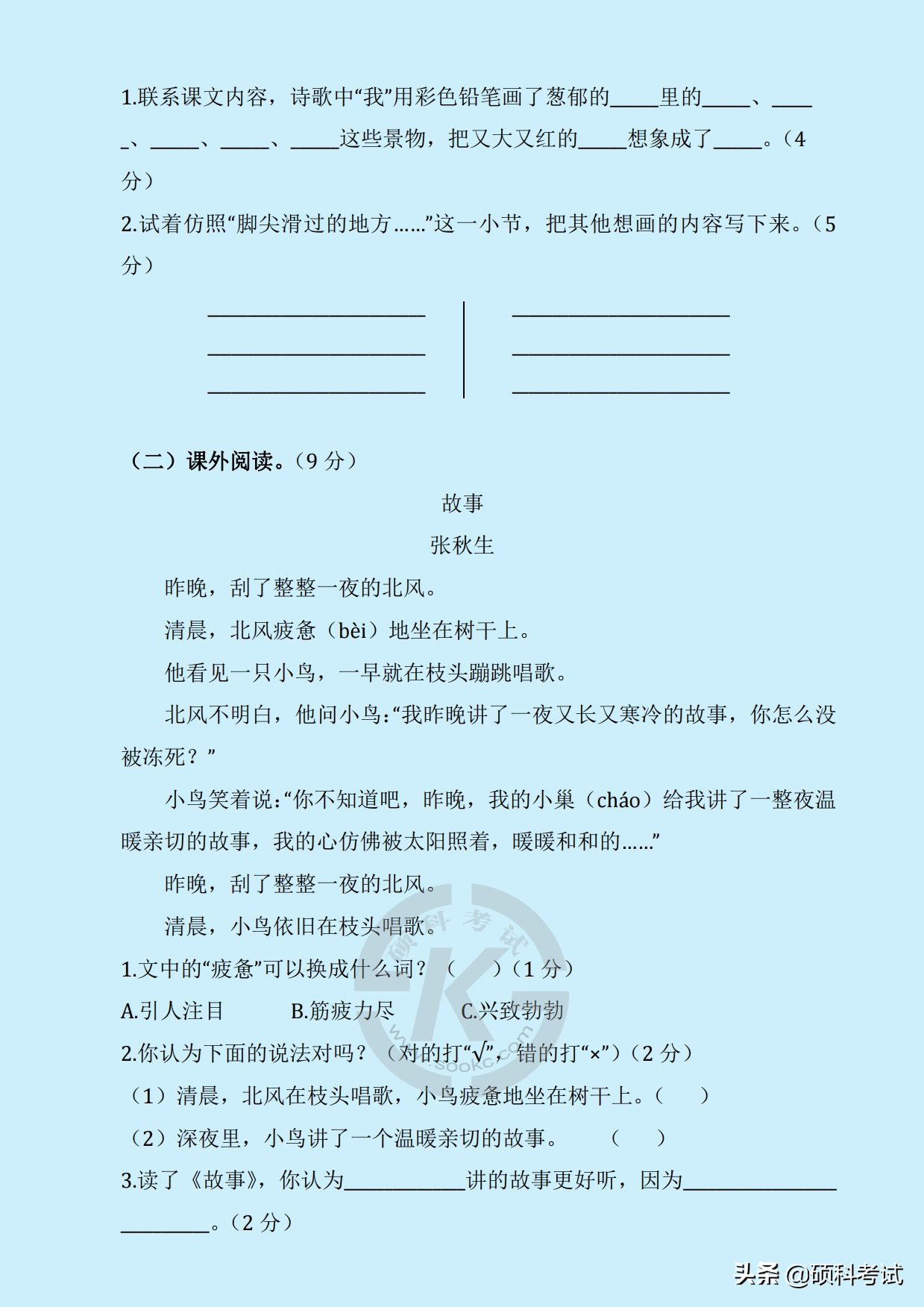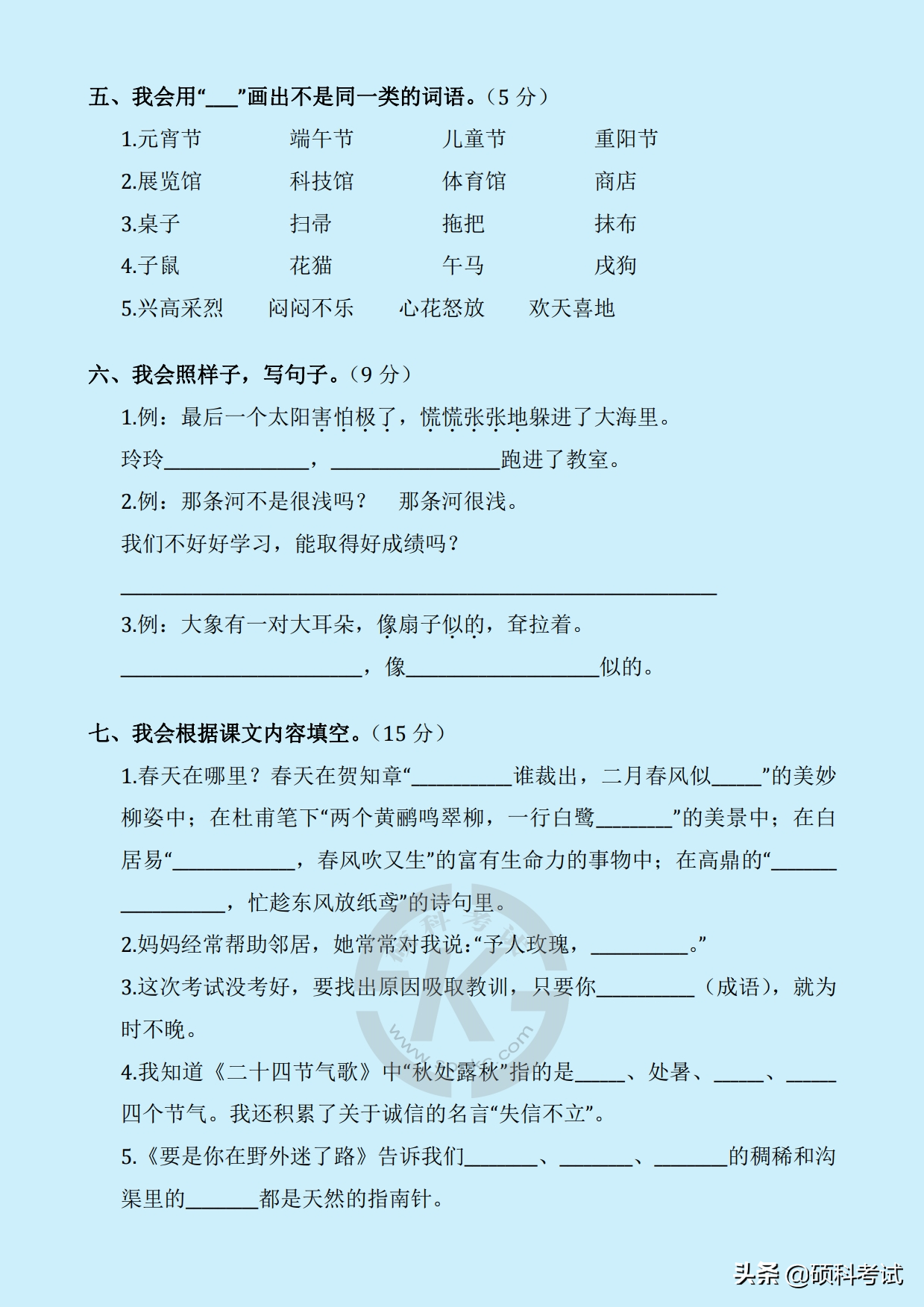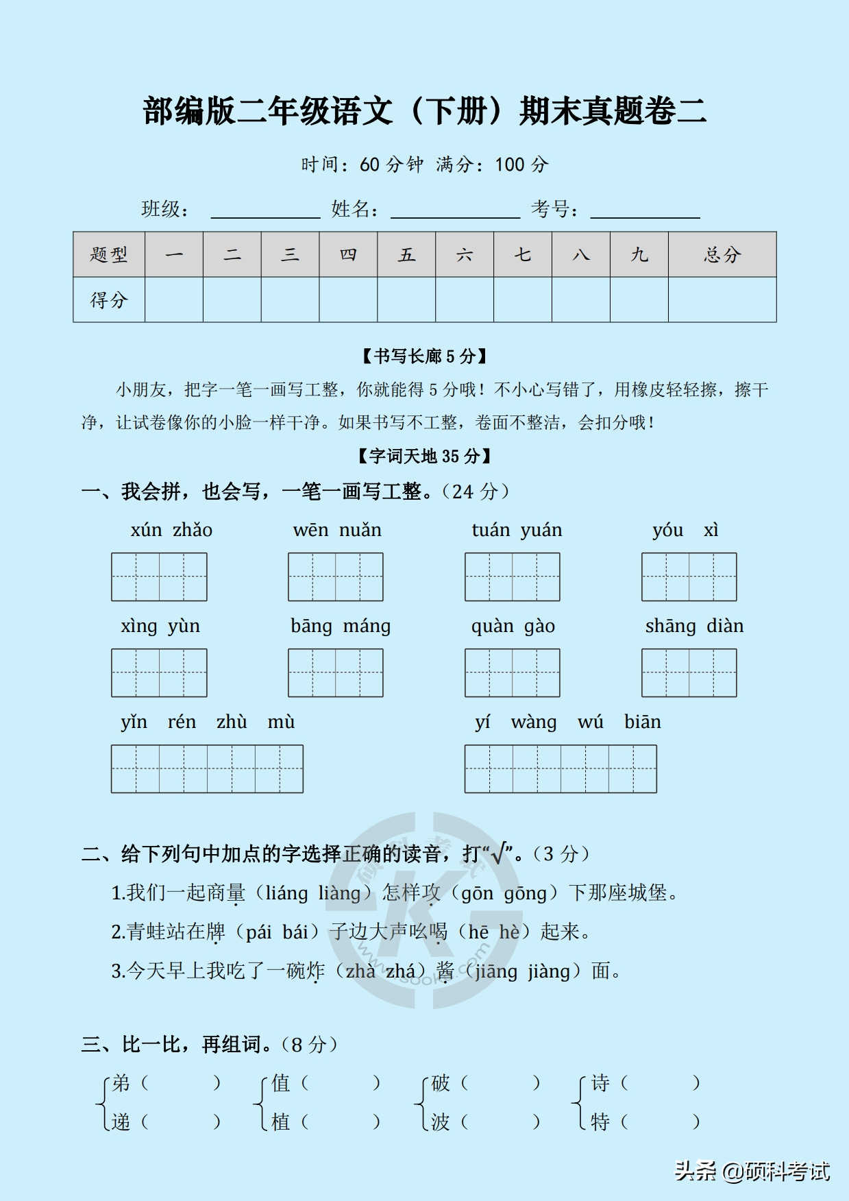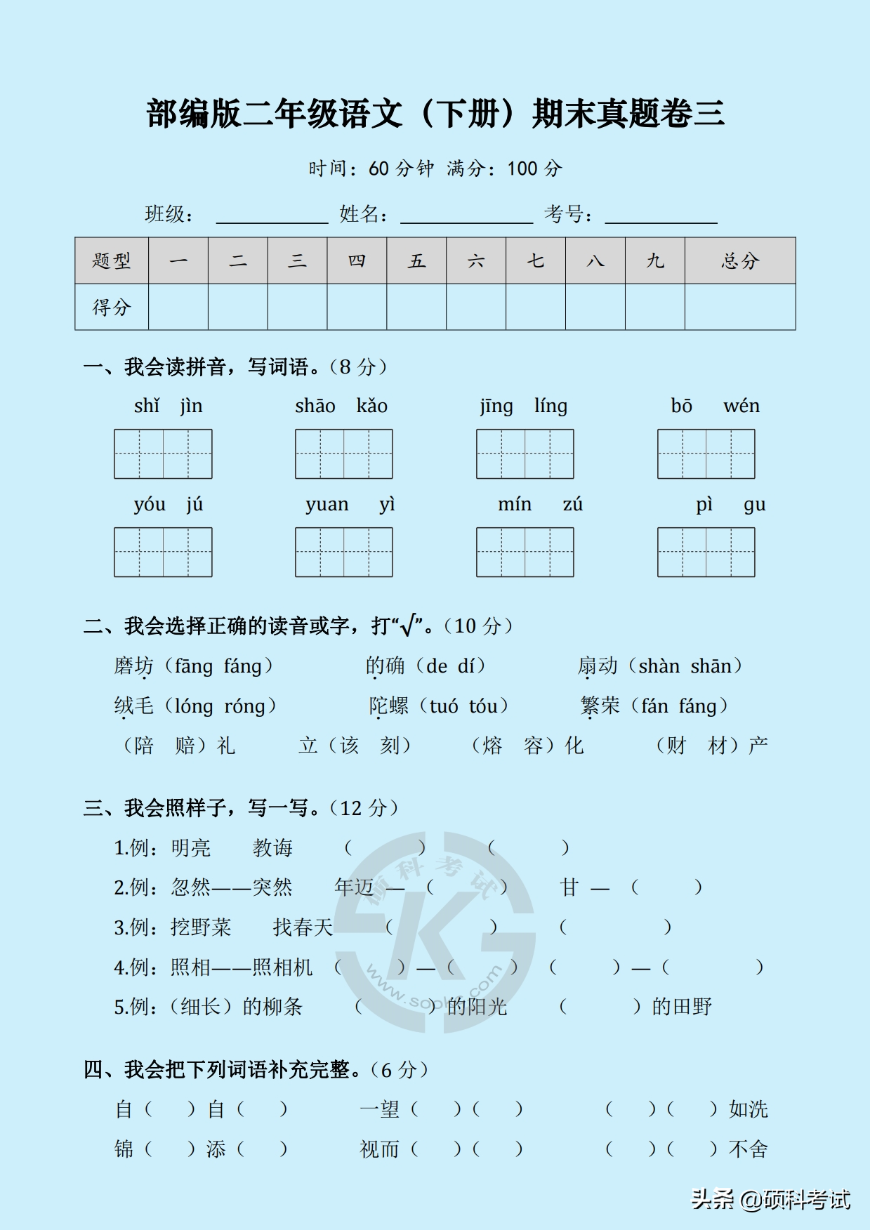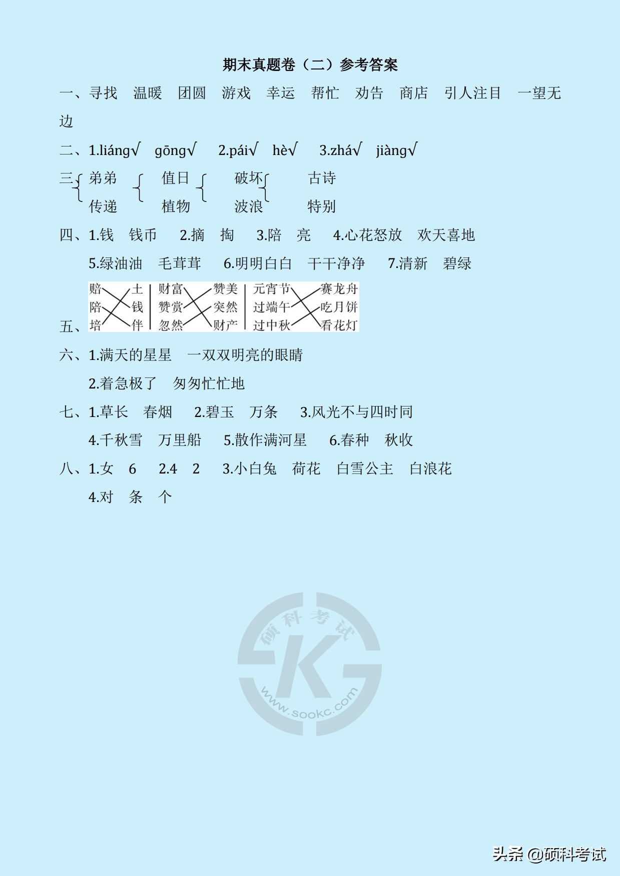 版权声明:我们致力于保护作者版权,注重分享,被刊用文章【语文期末考试试卷(二年级期末试卷)】因无法核实真实出处,未能及时与作者取得联系,或有版权异议的,请联系管理员,我们会立即处理! 部分文章是来自自研大数据AI进行生成,内容摘自(百度百科,百度知道,头条百科,中国民法典,刑法,牛津词典,新华词典,汉语词典,国家院校,科普平台)等数据,内容仅供学习参考,不准确地方联系删除处理!;