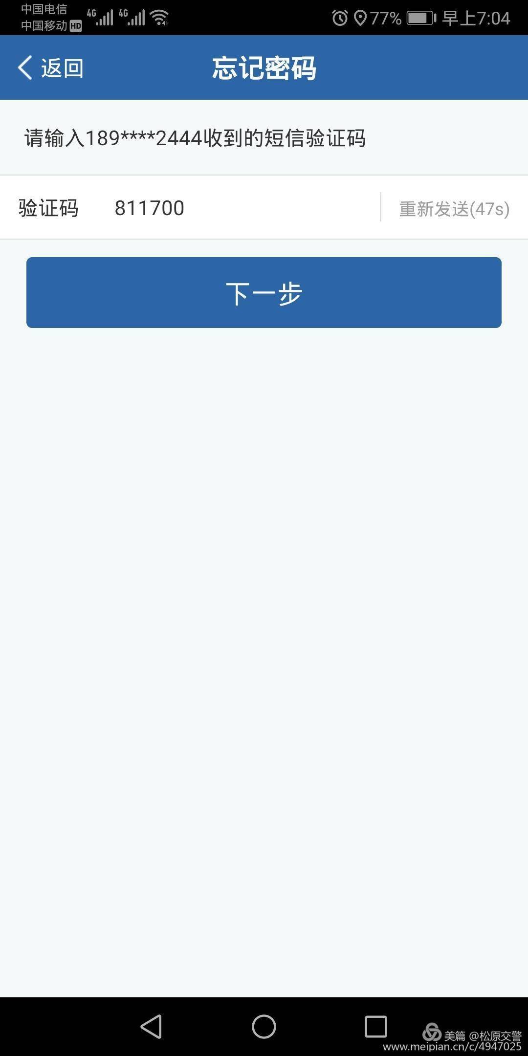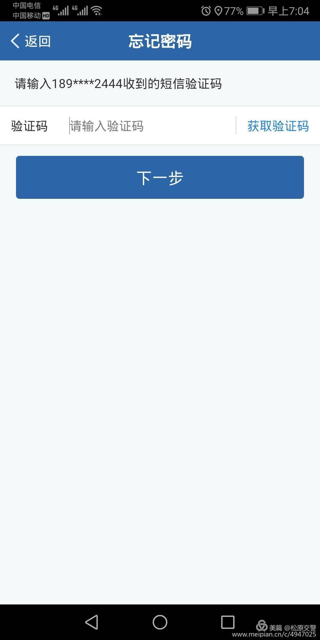 4.我们选择好注册的身份之后,就会来到短信验证页面,填写好短信验证码之后,点击下一步造成注册。